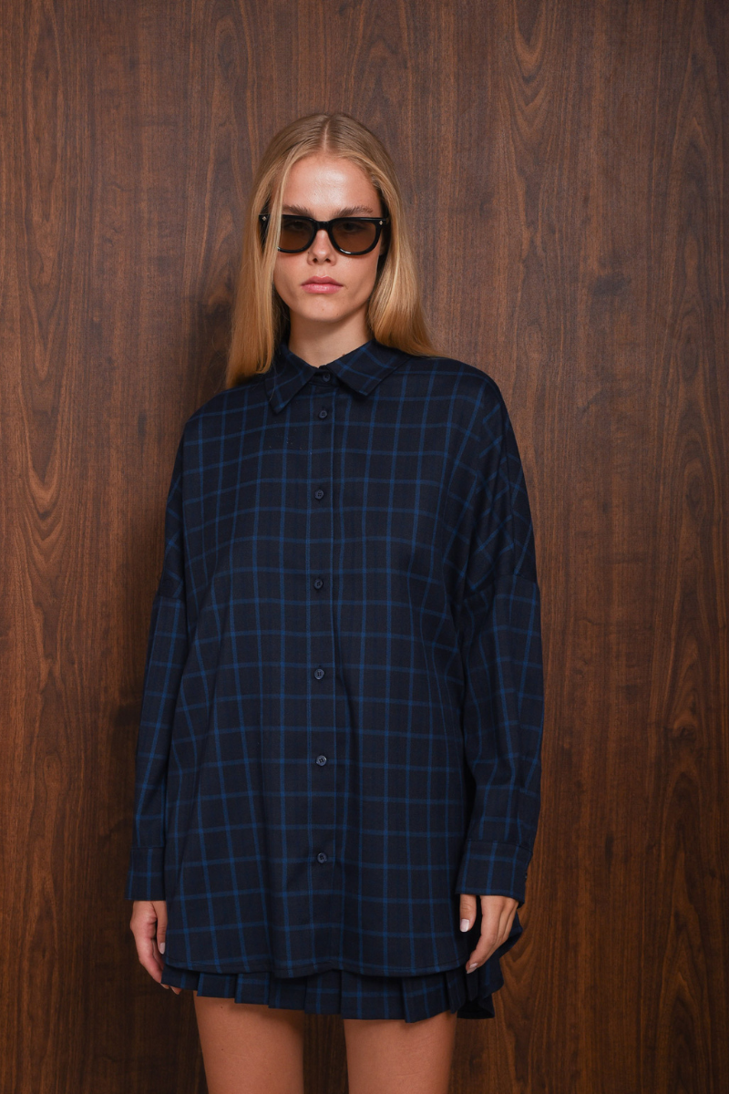 Το πουκάμισο Affect έχει oversized εφαρμογή με χαμηλωμένους ώμους, μυτερό γιακά και πλήρες μπροστινό μέρος με κουμπιά. Κατασκευασμένο από απαλό καρό ύφασμα, περιλαμβάνει μακριά μανίκια με μανσέτες με κουμπιά και καμπυλωτό στρίφωμα που είναι ελαφρώς μακρύτερο στο πίσω μέρος. Άνετο και ευέλικτο, συνδυάζεται εύκολα με τζιν, φούστες ή κομμάτια tailored.