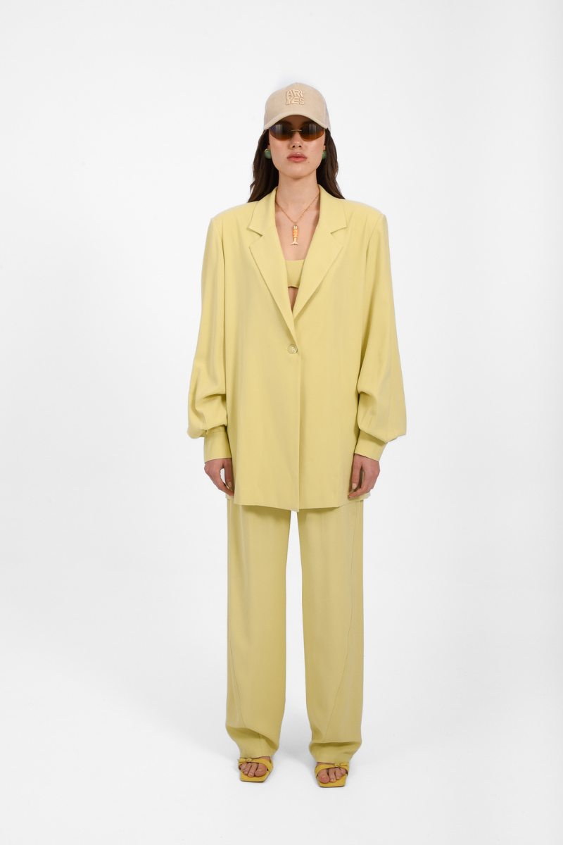 Το Noa Oversized Blazer συνδυάζει χαλαρό ντύσιμο με μοντέρνα κομψότητα. Σχεδιασμένο σε απαλό παστέλ-λιμένιο τόνο, διαθέτει oversized σιλουέτα, δομημένα πέτα, χαμηλωμένους ώμους και ογκώδη μανίκια για άνετη κίνηση. Ελαφρύ και ρευστό, με κλείσιμο με ένα κουμπί και διακριτική λεπτομέρεια γιακά σε αντίθεση, είναι ιδανικό για layering από το πρωί έως το βράδυ.