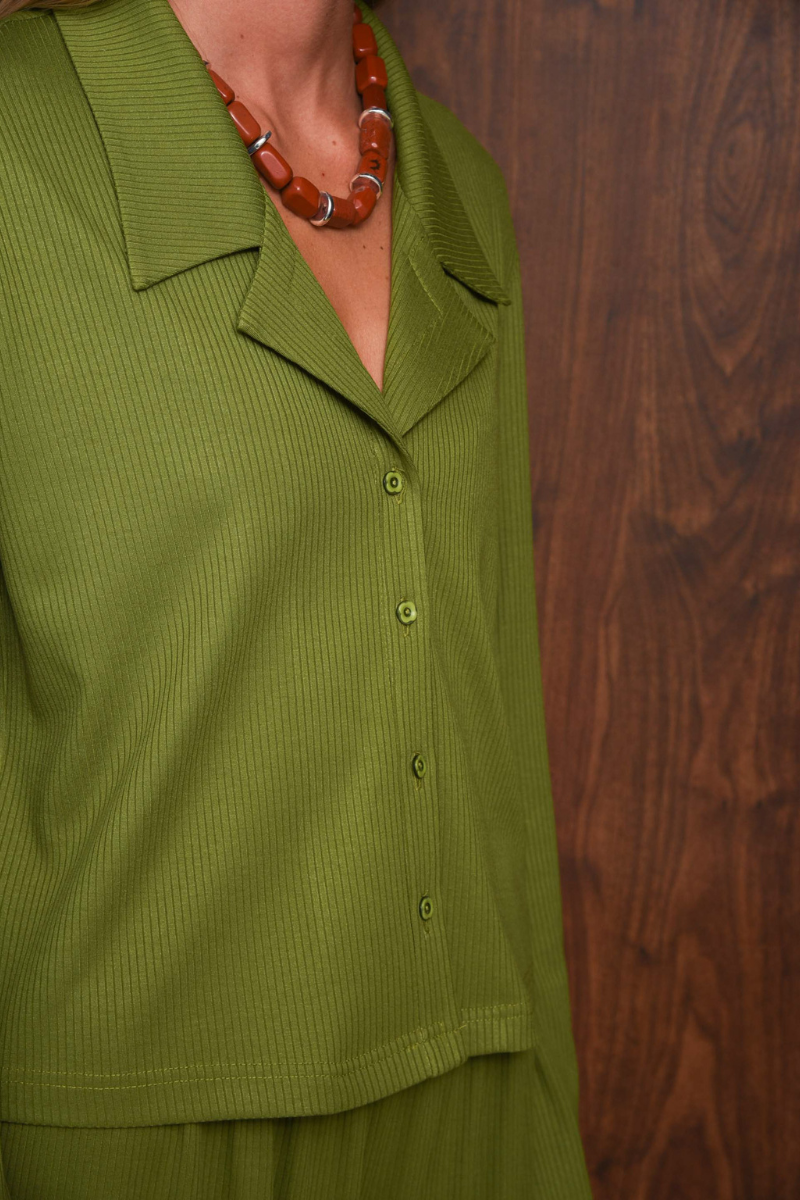 Το τοπ Reflect είναι ένα κοντό, μακρυμάνικο πουκάμισο με χαλαρή εφαρμογή και δομημένο γιακά. Κατασκευασμένο από απαλό, ριμπ ύφασμα, διαθέτει μπροστινό μέρος με κουμπιά και διακριτικά φαρδιά μανίκια για άνετη ροή. Η ελαφριά υφή του το καθιστά ιδανικό για layering ή για να το φοράτε μόνο του.