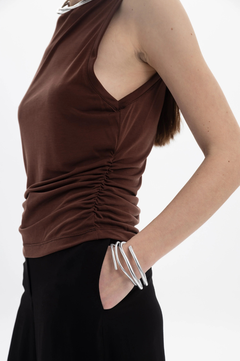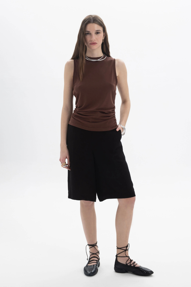 BLACK&BLACK – RUCHED SLEEVELESS TOP BROWN