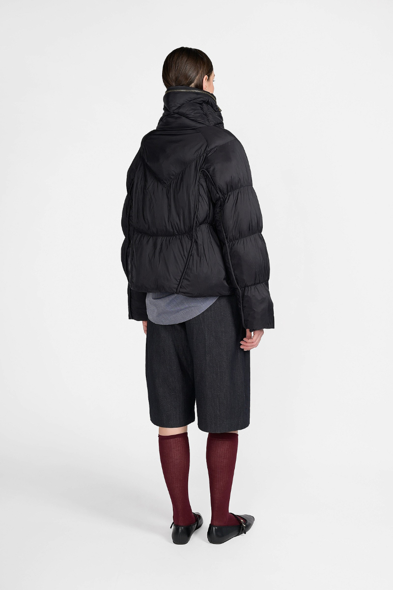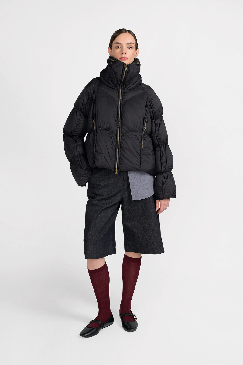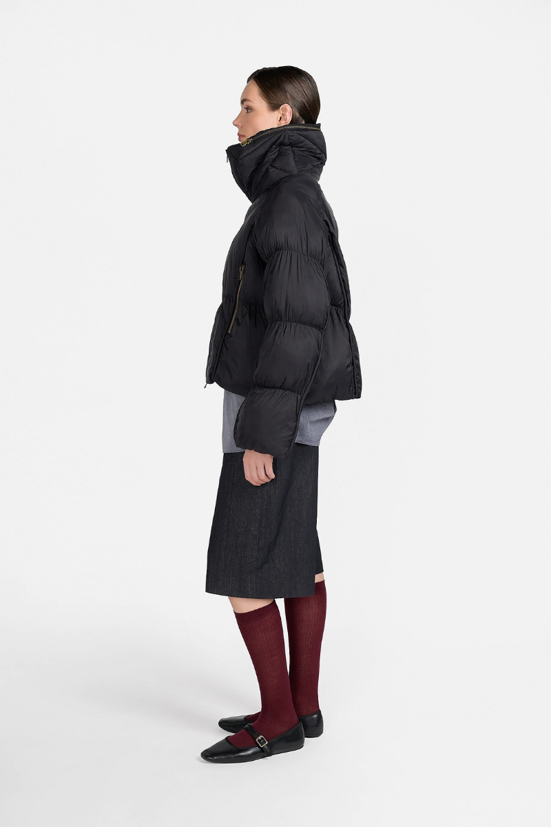 Το Margaux ενσαρκώνει την ουσία του μοντέρνου θηλυκού μπουφάν με πούπουλα: ογκώδες, τυλίγει και έχει μια εκλεπτυσμένη πινελιά. Το νάιλον ύφασμα με σατινέ φινίρισμα του δίνει μια γυαλιστερή και κομψή εμφάνιση, ενώ η επένδυση από πολυεστέρα εξασφαλίζει ζεστασιά και άνεση καθ’ όλη τη διάρκεια της σεζόν. Το καπιτονέ σχέδιο και το φαρδύ κόψιμο ενισχύουν τη σιλουέτα χωρίς να θέτουν σε κίνδυνο τη λειτουργικότητα. Ένα εντυπωσιακό κομμάτι, ιδανικό για να αντιμετωπίσετε τον χειμώνα με στυλ.