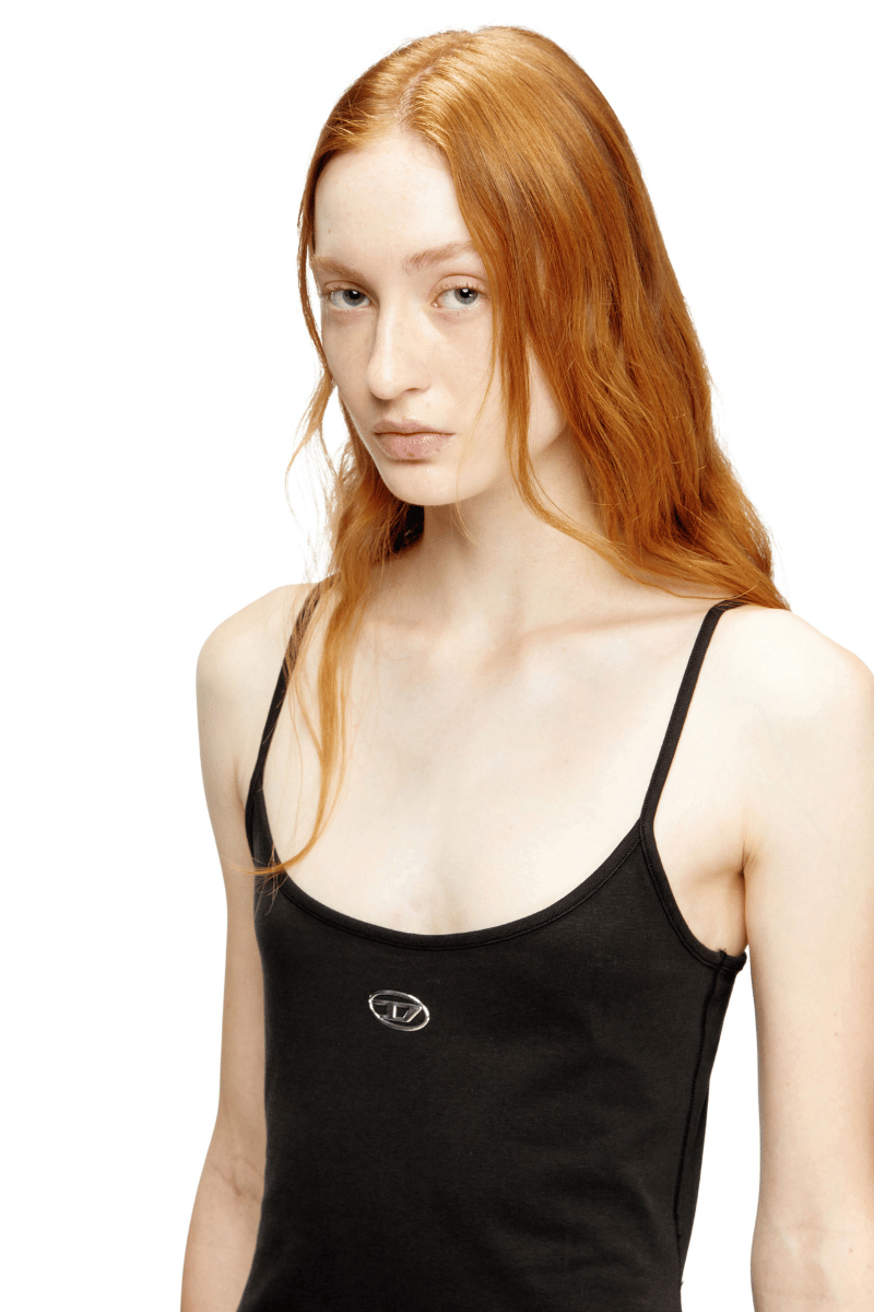 Μίνι φόρεμα με λεπτές τιράντες και φαρδιά σιλουέτα. Κατασκευασμένο από βαμβάκι και ελαστάνη ζέρσεϊ για άνετη εφαρμογή, διαθέτει ασημί χυτευμένο λογότυπο Oval D στο μπροστινό μέρος.