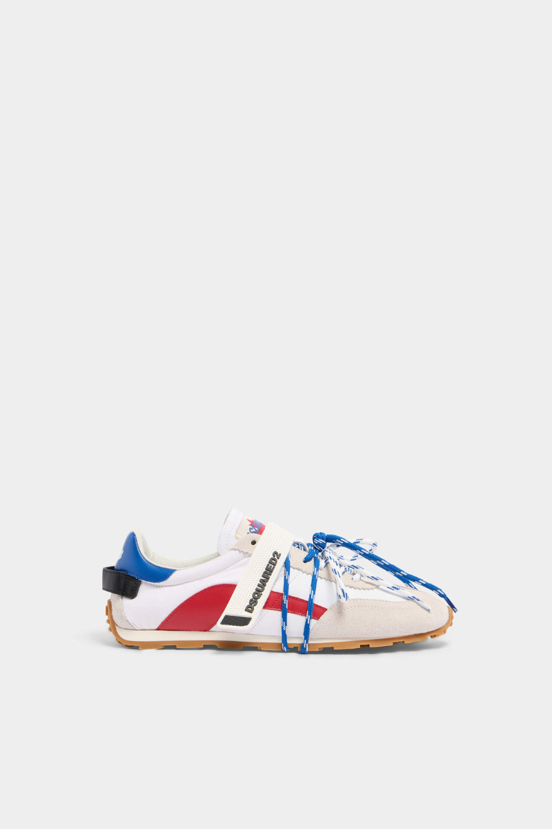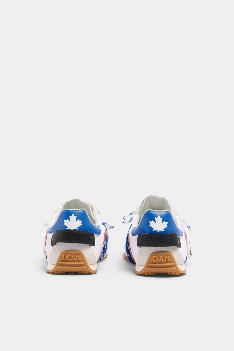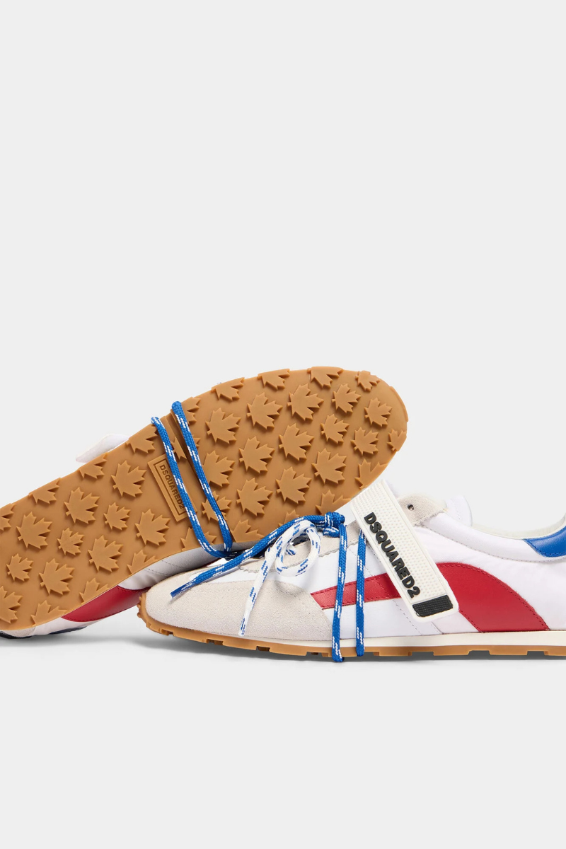 Step out in Dsquared2 attitude with sneakers featuring hiking-style double laces, a single over-lace strap, and a maple-leaf outsole groove that locks the laces in place. Signed by “Dean” and “Dan” on the heel, they’re best styled with shorts or loose-fit jeans.