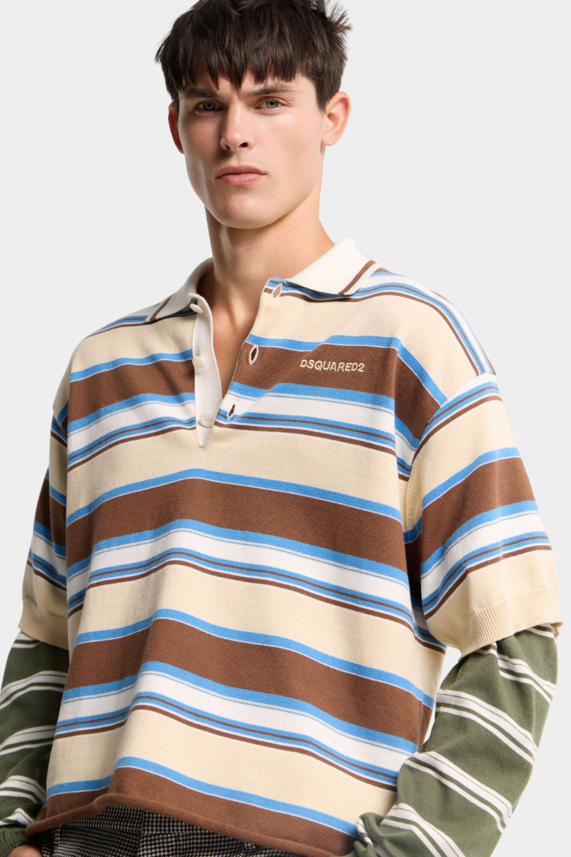 Why layer when it’s done for you? This multi-stripe cotton polo shirt subverts the classic cut with sewn-in sleeves for that effortless, two-in-one vibe. Finished with signature Dsquared2 branding on the chest.