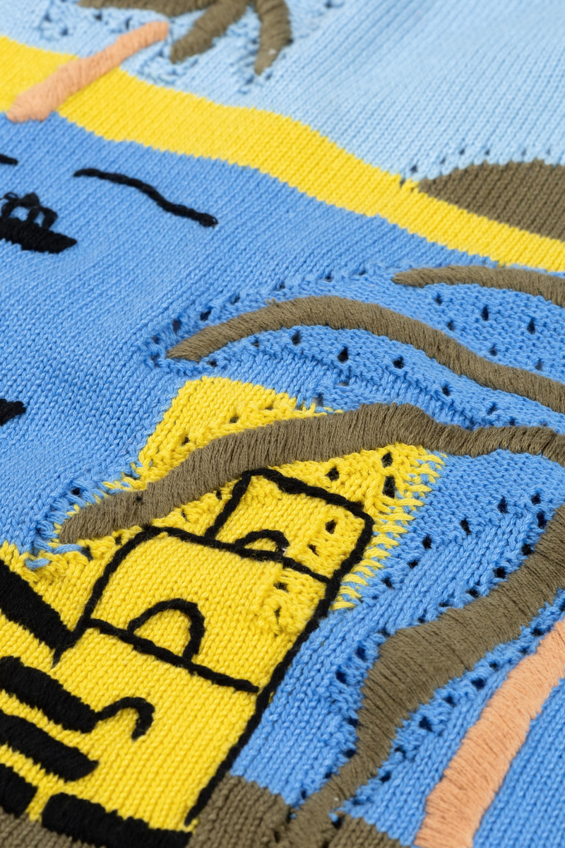 Αυτό το γραφικό τοπ με τιράντες διαθέτει ένα ζωηρό, εμπνευσμένο από τις διακοπές πλεκτό τοπίο. Κατασκευασμένο με κολακευτικό ντεκολτέ με τιράντες και λεπτή, ελαφρώς κοντή εφαρμογή, το κομμάτι αναβαθμίζεται μοναδικά από λεπτές τιράντες με χάντρες. Η άνετη πλεκτή κατασκευή με ριμπ ύφανση το καθιστά ένα ξεχωριστό κομμάτι. Συνδυάστε το με μια μίνι φούστα από τζιν για την τέλεια καλοκαιρινή εμφάνιση.