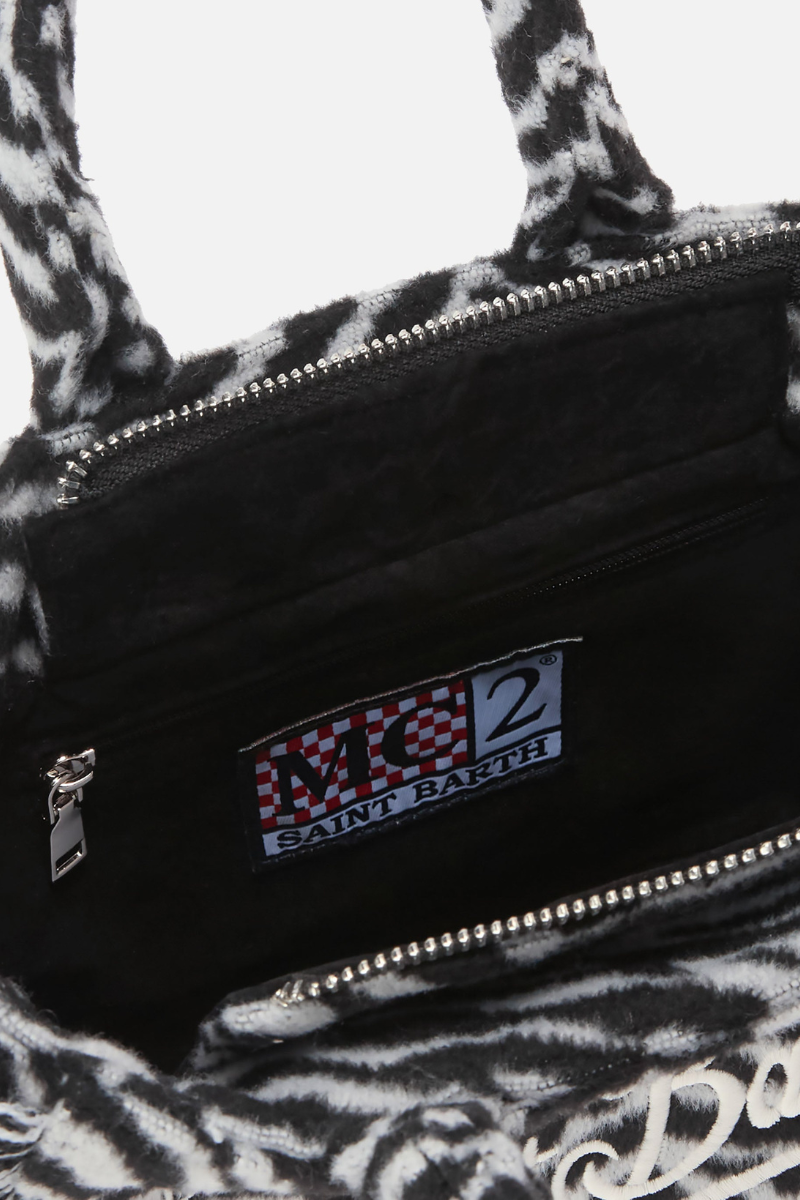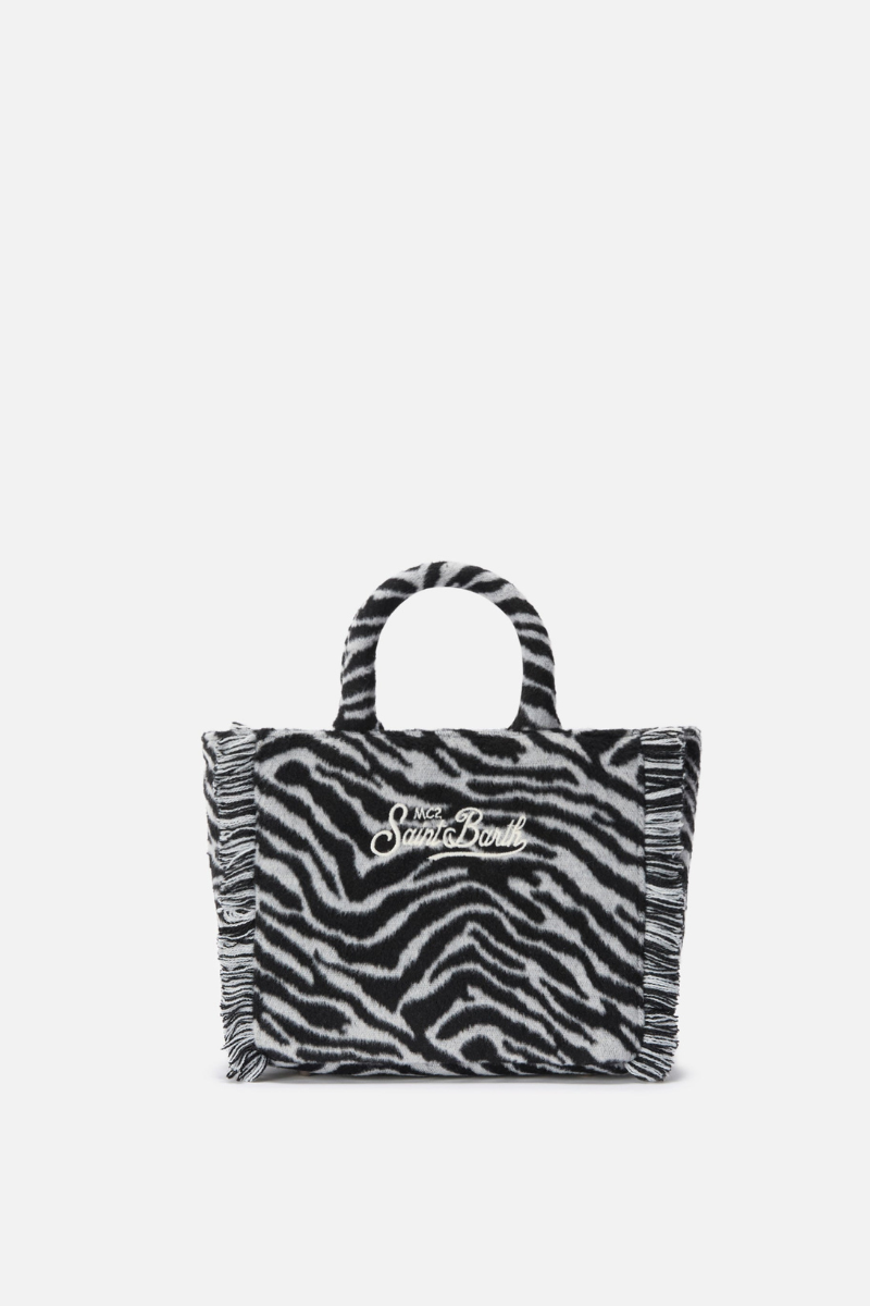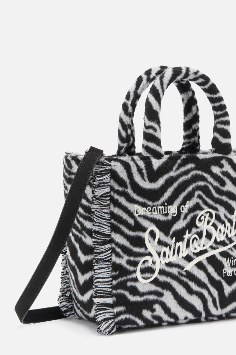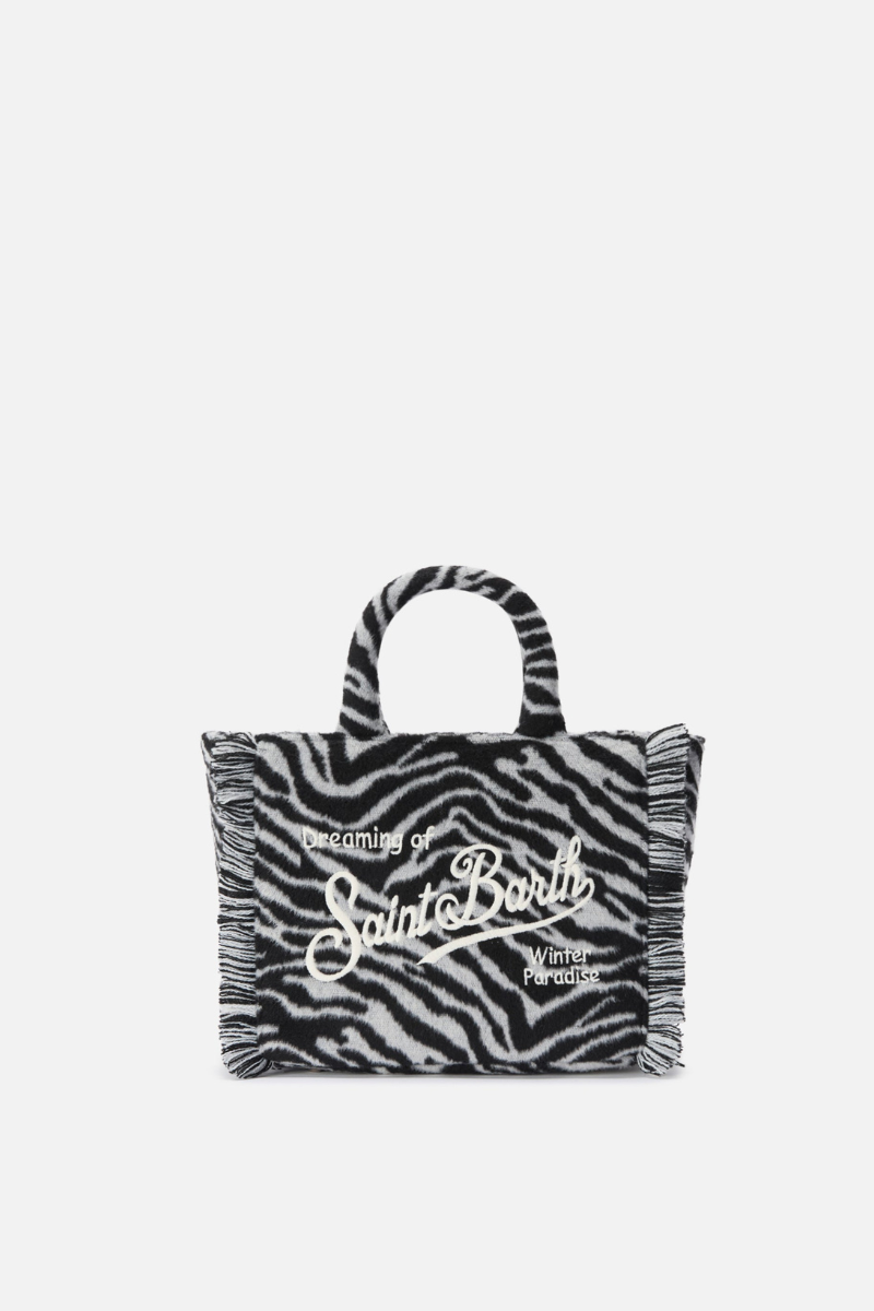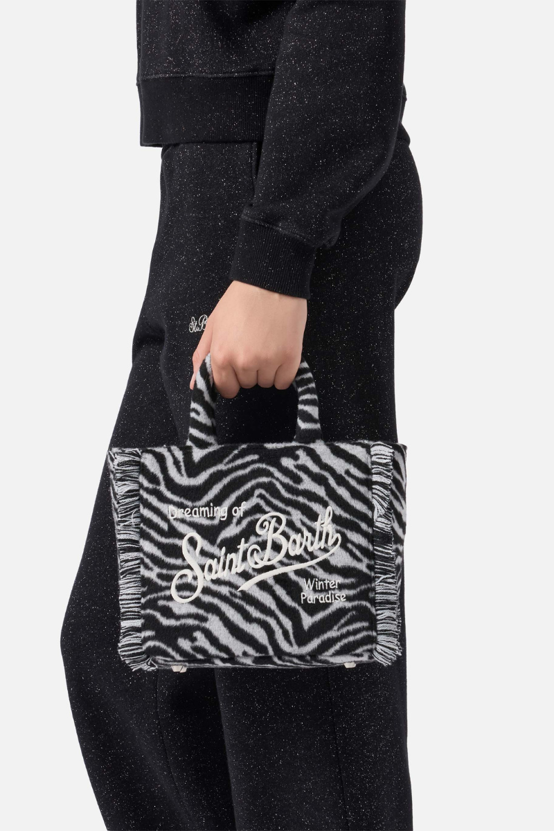 Η τσάντα Vanity Mini Felt από μείγμα μαλλιού με ζέβρα έχει σχεδιαστεί για όσους αγαπούν τις έντονες και πρωτότυπες εμφανίσεις.