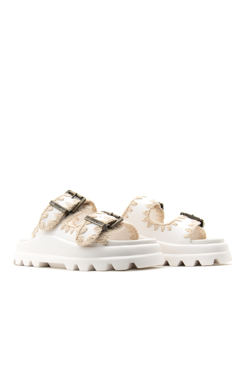 Σανδάλια Eva One Piece με δύο αγκράφες από μαύρο υλικό EVA, με διπλές ρυθμιζόμενες αγκράφες και ελαφρύ μονοκόμματο σχεδιασμό, ιδανικά για μια λειτουργική και άνετη καλοκαιρινή εμφάνιση ανάμεσα στην παραλία και την πόλη. Η εργονομική σόλα εξασφαλίζει εκτεταμένη άνεση και σταθερότητα, ενώ ο μινιμαλιστικός σχεδιασμός με κροσέ λεπτομέρειες προσθέτει μια μοντέρνα πινελιά.