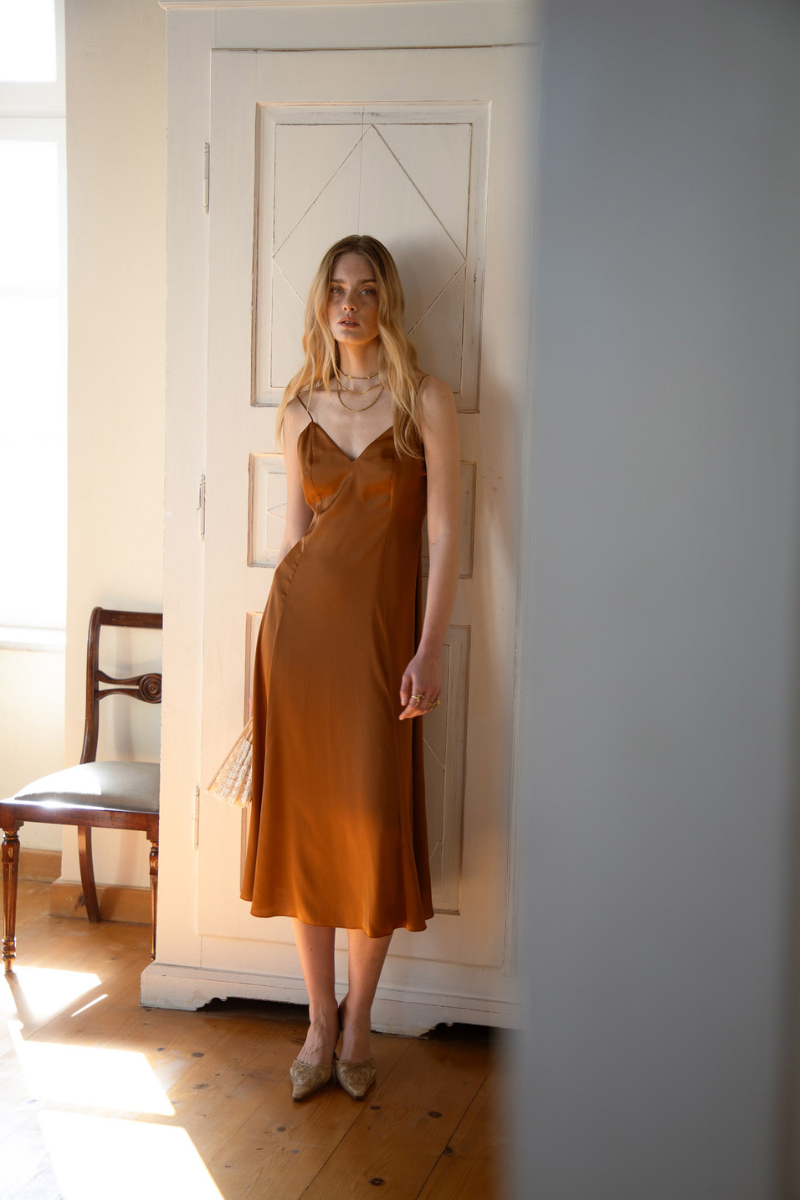 65%PL 30%RAY 5%SP Κανονική εφαρμογή Γραμμή Α V-ντεκολτέ & V-πλάτη Αόρατο κλείσιμο με φερμουάρ στην πλάτη Σταθερές τιράντες Ύψος μοντέλου: 1,80μ Το μοντέλο φοράει μέγεθος: S