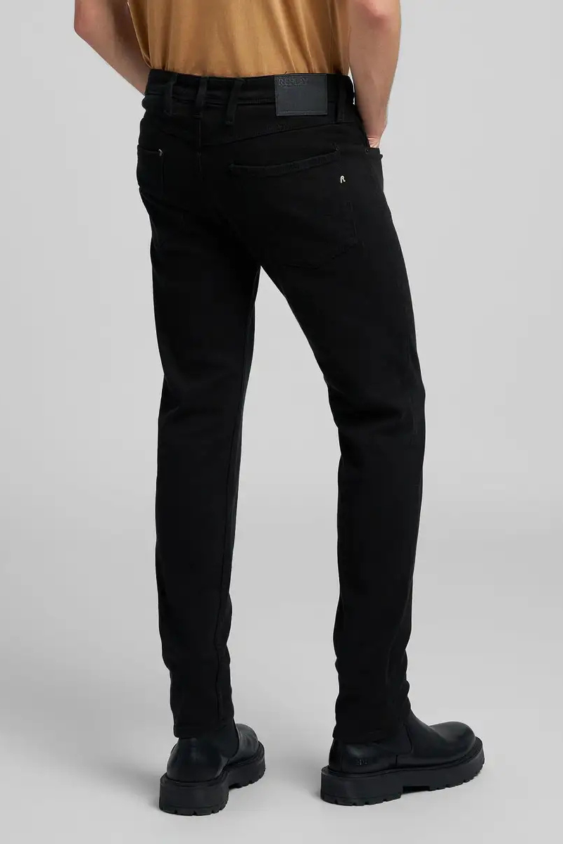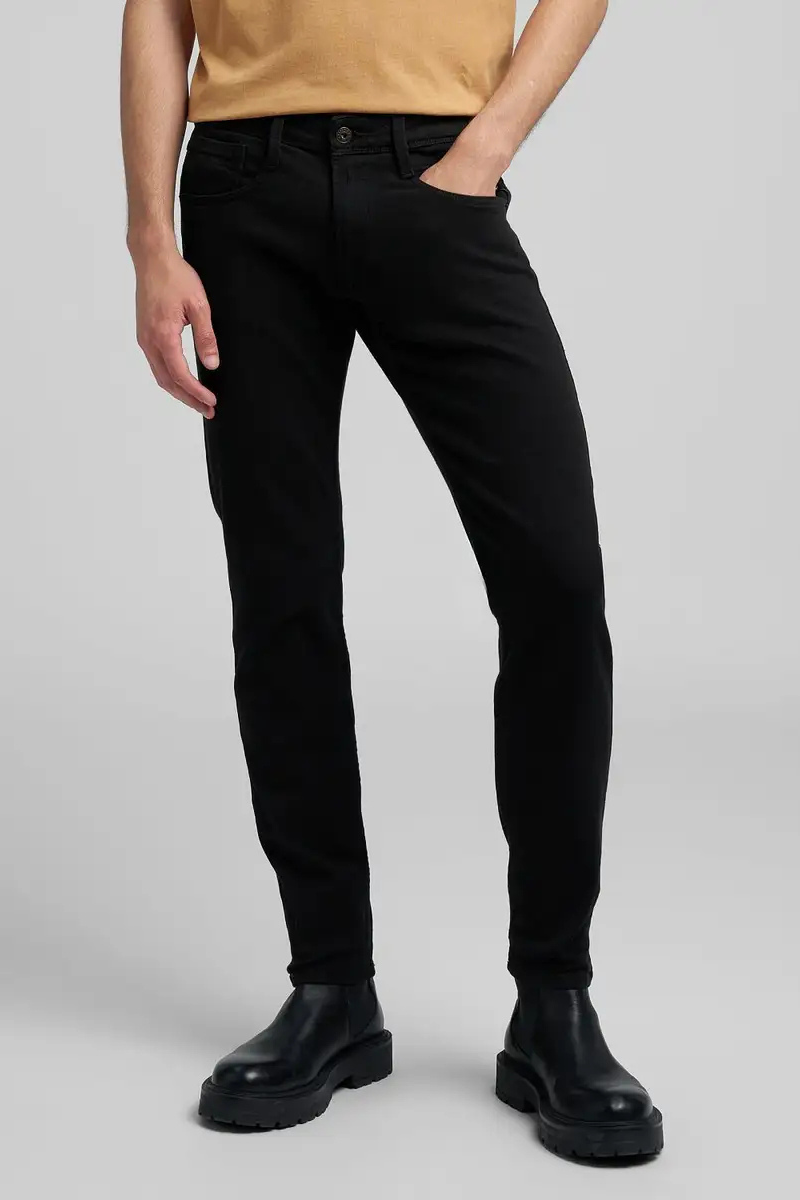 Τζιν στενής εφαρμογής με κανονικό μπούστο και λεπτό μπατζάκι που στενεύει προς το στρίφωμα. Αυτό το πεντάτσεπο κομμάτι διατίθεται σε μαύρο βαμβακερό ελαστικό τζιν τύπου bull 9,5 oz με σκούρο ξέβγαλμα. Οι πίσω τσέπες έχουν την εμβληματική ραφή σε σχήμα φτερού γλάρου και η μία τσέπη φέρει κέντημα R, ενώ η μία μπροστινή τσέπη διαθέτει ένα μικρό ένθετο με το λογότυπο. Κλείσιμο με φερμουάρ και κουμπί. 98% ΒΑΜΒΑΚΙ; 2%ΕΛΑΣΤΑΝ;