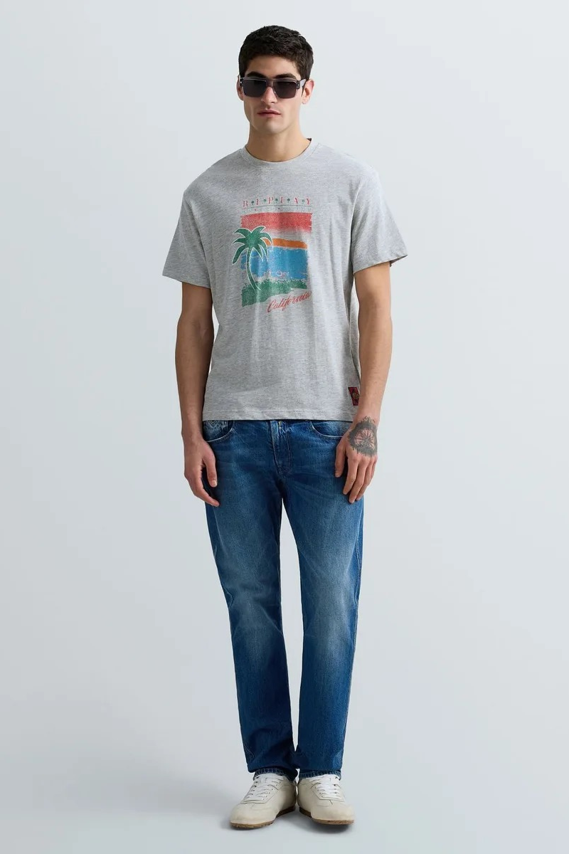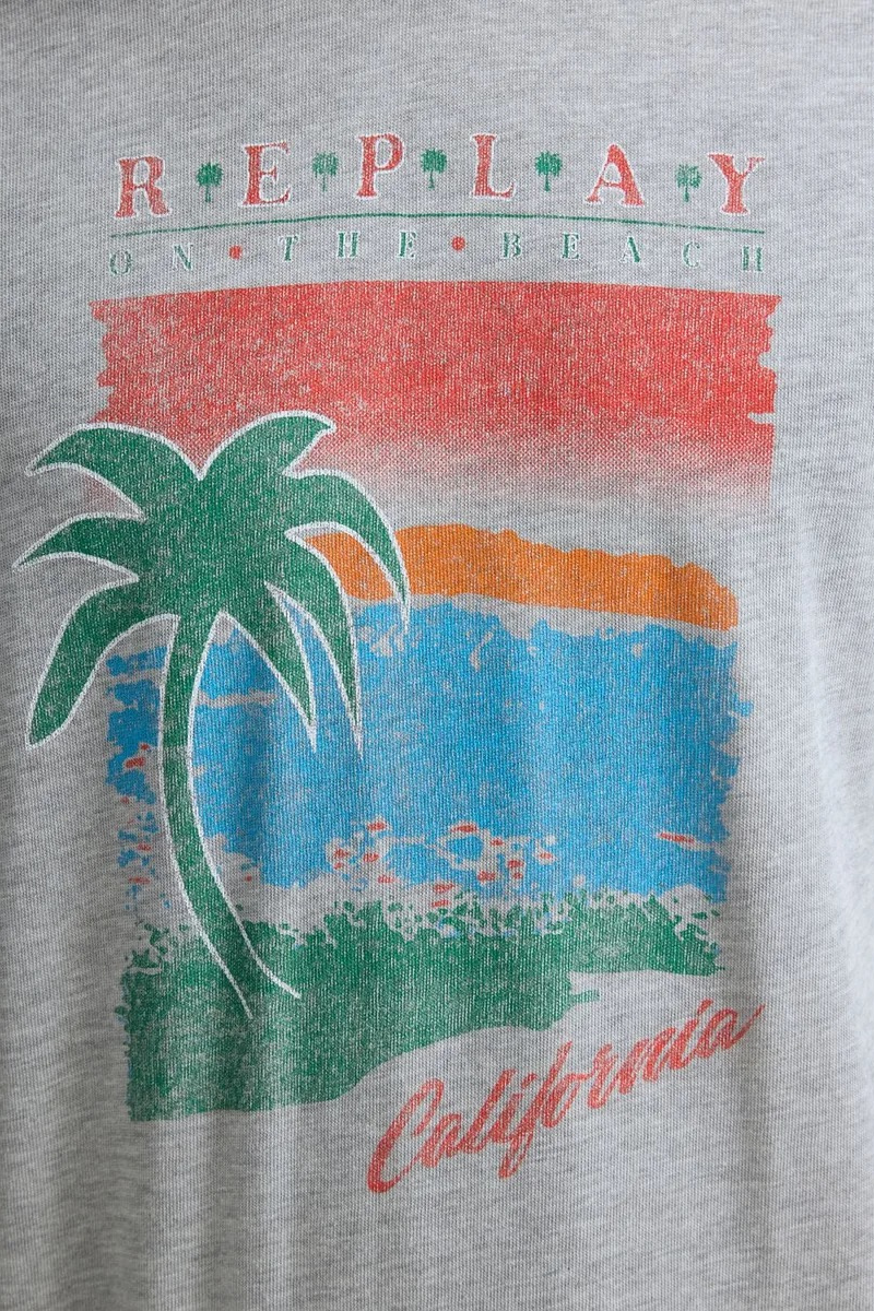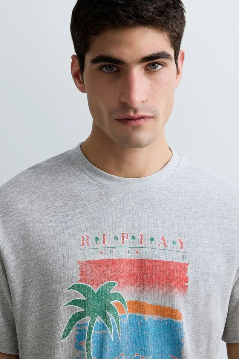 Μπλούζα με στρογγυλή λαιμόκοψη από απαλό μονόχρωμο βαμβακερό ζέρσεϊ με υφή υλικού. Αυτό το κοντομάνικο κομμάτι κανονικής εφαρμογής διαθέτει στυλιζαρισμένο καλιφορνέζικο σχέδιο παραλίας με το λογότυπο Replay.