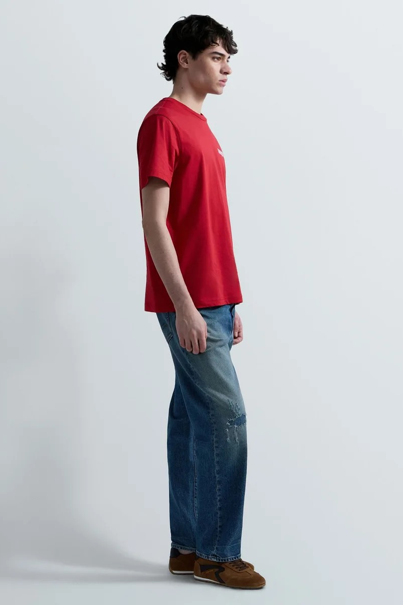 Μπλούζα κανονικής εφαρμογής με στρογγυλή λαιμόκοψη από δροσερό, καθαρό βαμβακερό ζέρσεϊ. Αυτό το κοντομάνικο στυλ διαθέτει το πολύχρωμο γραφικό με το λογότυπο της μάρκας στο στήθος, το οποίο βρίσκεται επίσης σε μάξι μέγεθος στο πίσω μέρος. Η εμβληματική ετικέτα με τη σημαία Replay προσθέτει την τελική πινελιά στο στυλ στο πλάι.