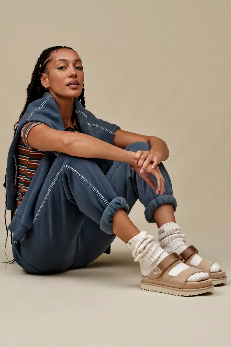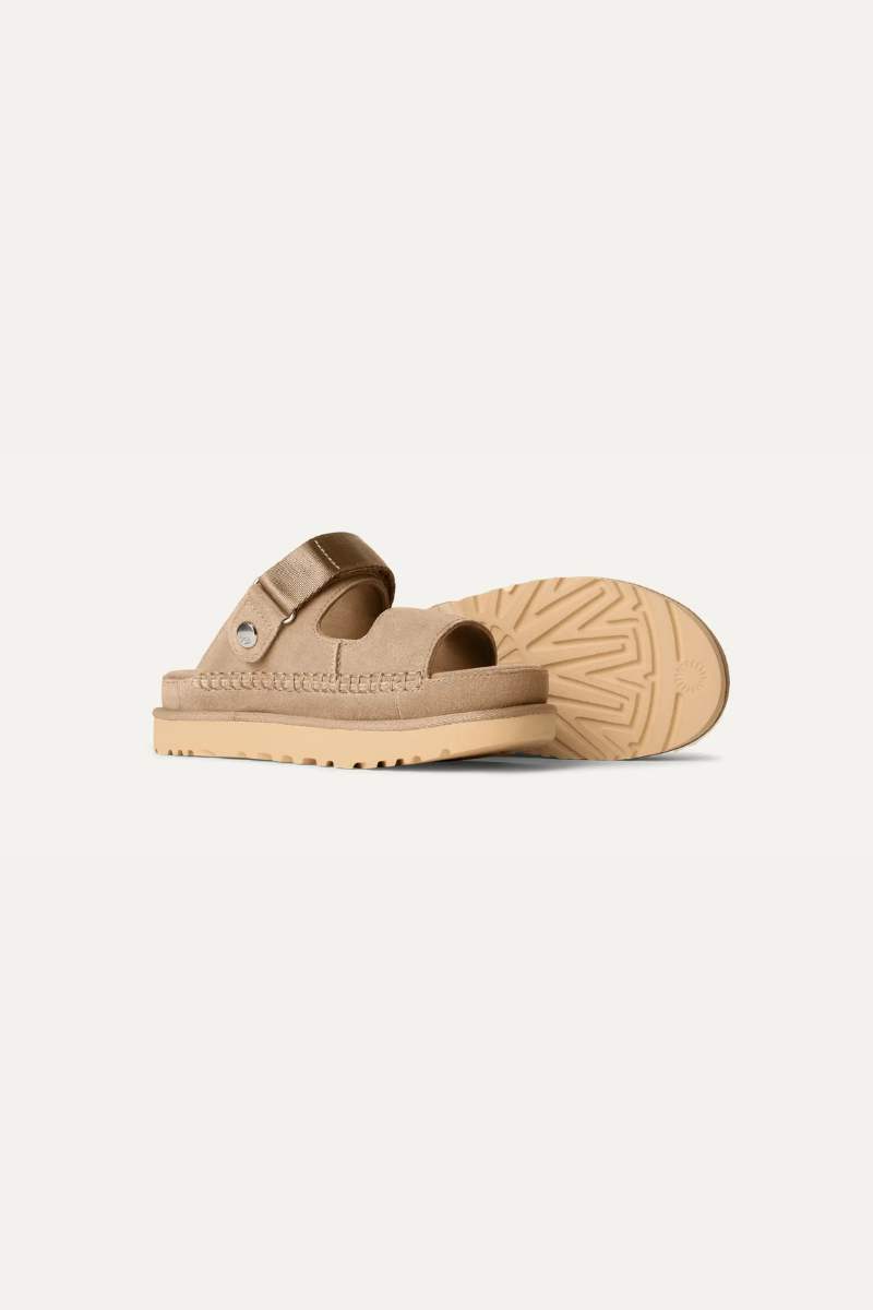 Έτοιμο, έτοιμο, γλιστράει. Το Goldenstar Glide μας προσφέρει μετατρέψιμη άνεση σε όλες τις ηλιόλουστες εξορμήσεις σας. Είναι σχεδιασμένο με ρυθμιζόμενο λουράκι στη φτέρνα που μπορεί να γυρίσει μπροστά για πρόσβαση σαν να γλιστράτε όταν βρίσκεστε εν κινήσει. Το ανατομικό πέλμα είναι επενδεδυμένο με μαλακό, ανακυκλωμένο υλικό εμπλουτισμένο με επεξεργασία κατά των οσμών για να σας κρατάει φρέσκους. Από το πλούσιο σουέτ επάνω μέρος μέχρι τη σόλα από ανανεώσιμο EVA από ζαχαροκάλαμο, το Goldenstar Glide κατευθύνεται κατευθείαν στη σειρά των «αγαπημένων» σας.